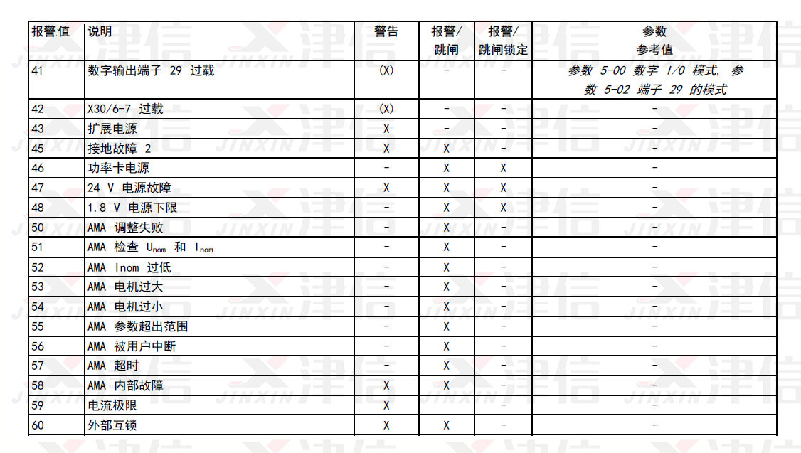 3、丹佛斯變頻器故障代碼ERR40,41,42,43,44,45,46,47,48,49,50,51,52,53,54,55,56,57,58,59,60