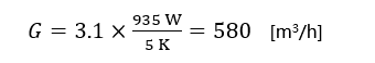 柜壁的傳導熱量我們可以忽略不計,然后假定溫差是5K(°C),前面的公式可以計算出所需的通風量: