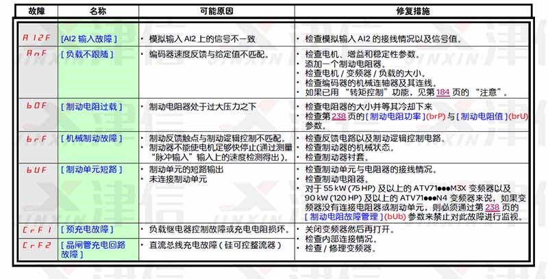 施耐德ATV71變頻器故障分為兩種,一是不能自動(dòng)復(fù)位的故障,二是可以自動(dòng)復(fù)位的故障。