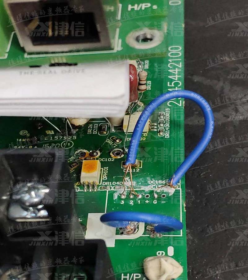 將電流傳感器拆除做單板測(cè)試,送電后仍然報(bào)警cd3.1,根據(jù)電流傳感器線路,將板卡上的G點(diǎn)和1,2,3三個(gè)點(diǎn)短接(如下圖3所示) 傳感器型號(hào):6900,(如下圖4所示)