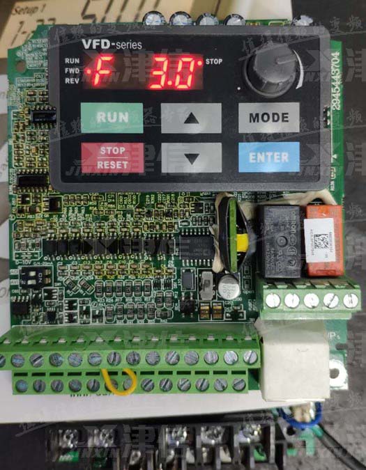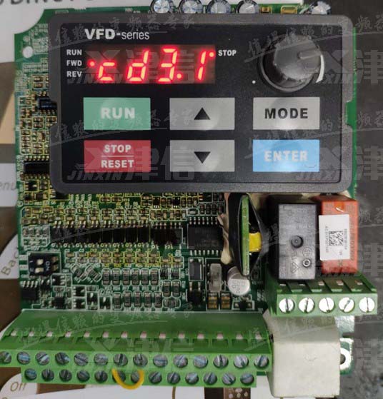 用戶送修一臺(tái)臺(tái)達(dá)C200系列變頻器到上海津信維修服務(wù)中心(如下圖1),送電顯示cd3.1(如下圖2所示),不可復(fù)位,斷電重新上電后依舊報(bào)警,查看C200系列說(shuō)明書可知,該故障為W相電流偵測(cè)異常。