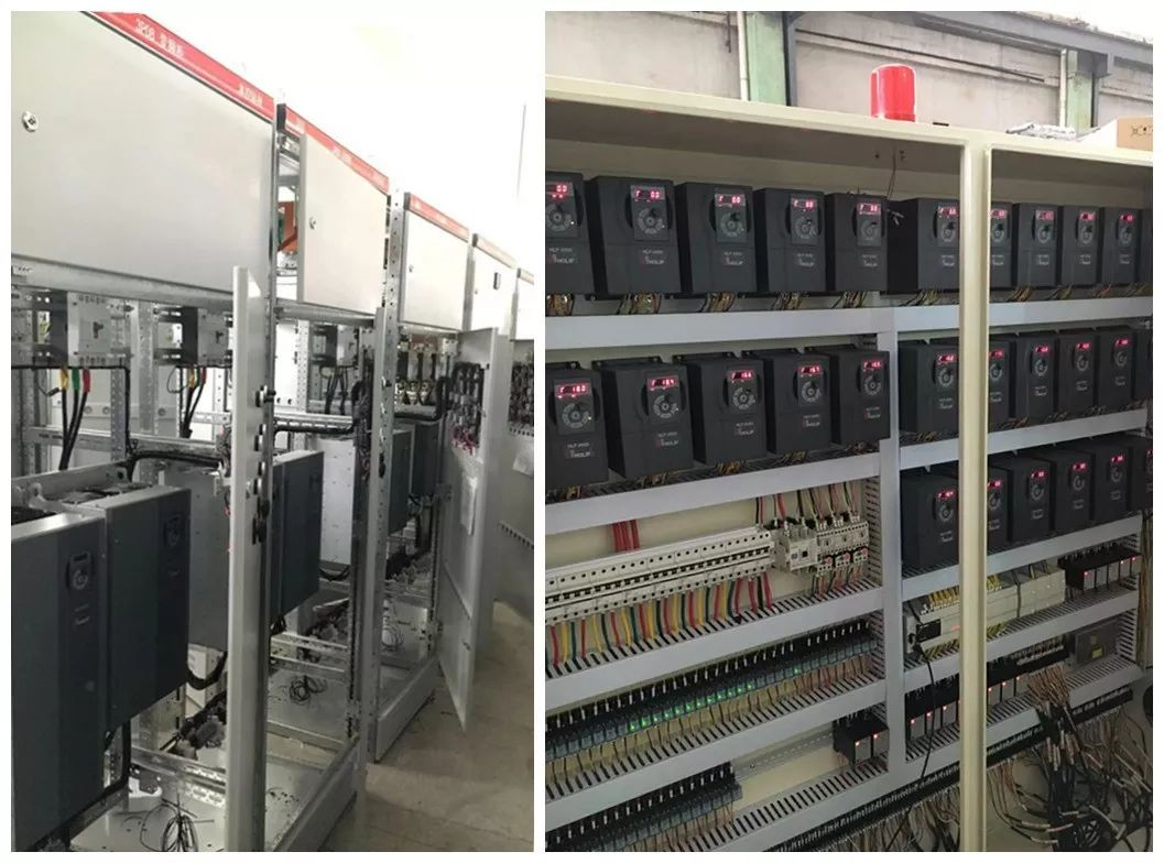 外加空壓機、羅茨風機等。整線配備電機200余套,裝機容量超過1600 kW,可見變頻器在節(jié)能上大有作為。